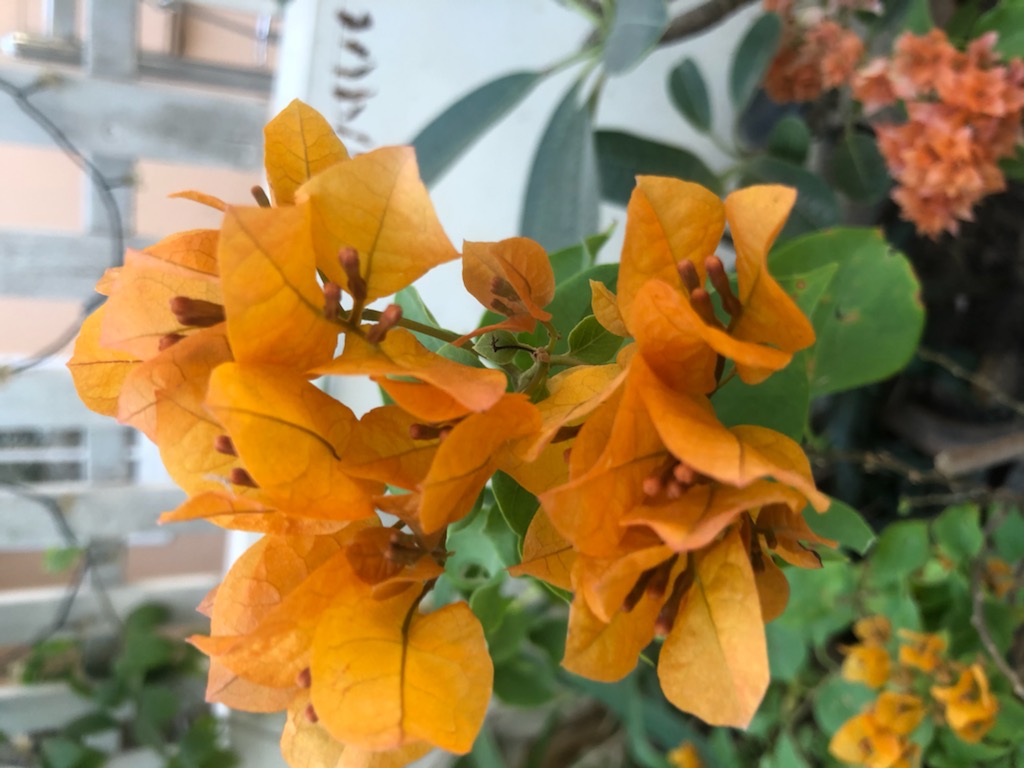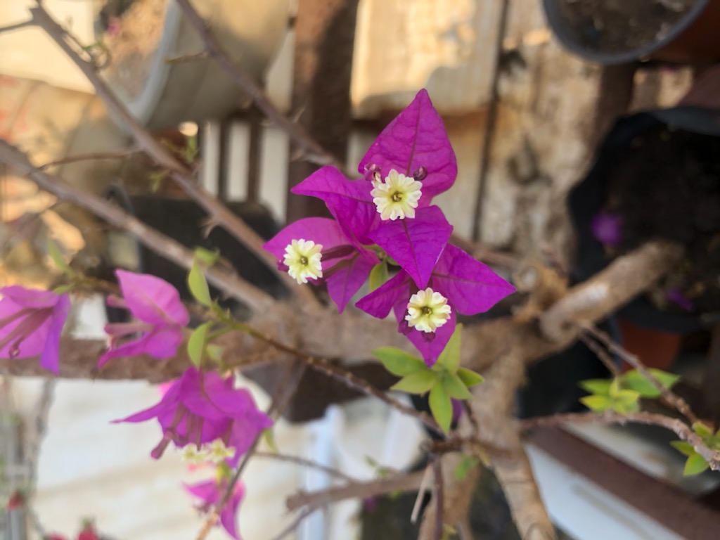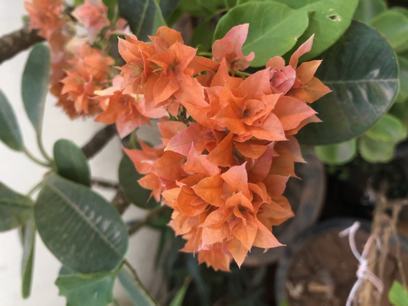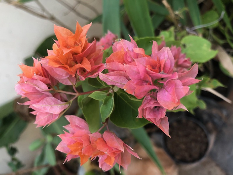 How are you all today? Lovely weather has graced our place, and my plants are thriving and cheerful! I went on a nursery shopping spree, and guess what I found? Lovely bougainvilleas!